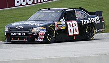 Hendrick Motorsports named Almirola a standby driver for the No. 48 team in case Jimmie Johnson needed to leave for the birth of his daughter.[8] Almirola was not needed. In July 2010, Almirola was again a standby driver for Hendrick Motorsports at Pocono in case Jeff Gordon had to leave or miss the race due to the birth of Gordon's son. At Loudon, he was standby for a sick Scott Speed. He drove the No. 9 Richard Petty Motorsports Ford at Martinsville Speedway in Fall 2010 after Kasey Kahne was released from his contract.[9] Almirola had his first Sprint Cup Top 5 finish at Homestead. At Talladega in the fall, he ended up in the closest finish in truck series history by ending up second to Kyle Busch in 0.002 of a second, who passed underneath Almirola below the yellow line. The 1-2 finish was the same as the previous race in 2009 but the finish was controversial because of the yellow line rules (as NASCAR rules state that a driver must not advance his position by going below the yellow line even if he is forced down there). But officials determined that Busch had the lead before going below the yellow line thus making Busch's winning move legal. In 2011, Almirola drove the No. 88 Nationwide Series car for JR Motorsports. He won two poles and had 18 top-10s to finish fourth in points. He was released from his contract after the season when he accepted a full-time Sprint Cup ride, driving for Richard Petty Motorsports in the No. 43 Ford.[10]
