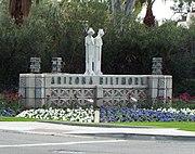 Adding to the confusion, Frank Lloyd Wright influences have been added to the property over the years. This includes a stained glass window design entitled "Saguaro Forms and Cactus Flowers" that Wright designed as a magazine cover for Liberty Magazine in 1926. It was fabricated by Taliesin students and installed during the 1973 hotel renovations and restoration. Reproductions of the geometric 'sprite' statues originally designed by Wright and sculpted by Alfonso Iannelli for the 1915 Midway Gardens project in Chicago are placed around the property. Also, the original hotel solarium was converted to a restaurant in 1973 and since the mid-1990s has been named 'Wright's'. Three onsite restaurants bear Wright's name: Wright's at the Biltmore, The Wright Bar, and Frank & Albert's.[2][4]