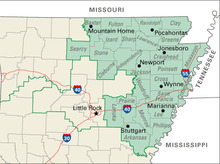 Before the 2010 census, the 1st district represented portions of northeastern Arkansas, encompassing the counties of Arkansas, Baxter, Clay, Cleburne, Craighead, Crittenden, Cross, Fulton, Greene, Independence, Izard, Jackson, Lawrence, Lee, Lonoke, Mississippi, Monroe, Phillips, Poinsett, Prairie, Randolph, Saint Francis, Searcy, Sharp, Stone, and Woodruff.