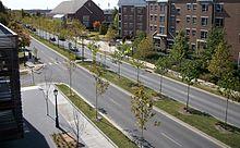 After the stadium, AR 112 turns east and becomes West Maple Street and passes Dale Bumpers College of Agricultural, Food and Life Sciences and the Pat Walker Health Center. The highway turns north and becomes Garland Avenue, which is a median-divided highway until Highway 112S/Wedington Drive/North Street. The medians were added in 2009 after contention from the City of Fayetteville and residents. Ultimately, it was decided to have one continuous median that becomes a turn lane, with separate bike lanes on both sides.[5] AR 112 continues north through Fayetteville, intersecting Wedington Drive just north of campus. The route continues as an important artery through the city, crossing I-49/US 62/US 71 south of the Fayetteville Teardrop (I-49 exit 67). AR 112 runs north from the expressway to Tontitown as Maestri Road, intersecting US 412 in Tontitown. Continuing north through Elm Springs as Elm St., the route enters Benton County.