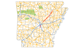 - ^ a b c d Planning and Research Division (2010). "Arkansas Road Log Database". Arkansas State Highway and Transportation Department. Archived from the original (Database) on 23 June 2011. Retrieved June 9, 2011.