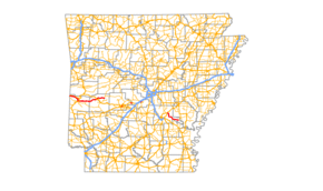 - ^ a b c d e f g h i System Information and Research Division (2014). "Arkansas Road Log Database" (MDB). Arkansas State Highway and Transportation Department. Retrieved March 27, 2016.