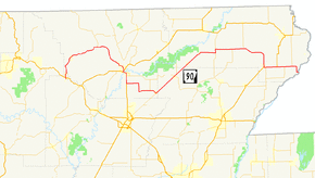 Arkansas Highway 90 (AR 90, Ark. 90, and Hwy. 90) is an east–west state highway in northeast Arkansas. The route of 81.93 miles (131.85 km) runs from Main Street in Ravenden to Route 84 at the Missouri state line.[2] The route is an entirely undivided surface highway that passes through rich cotton country.[3][4][5][6]
