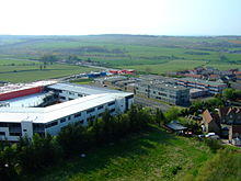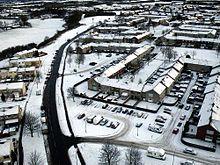 The discovery of large coal deposits and also ironstone in the area attracted the attention of a number of companies and several pits were sunk in the area.[16] A coal company was formed in 1819 and began to work the "Woodend Pit" to the north-west of the toll house.[14] The resulting boost in prosperity brought railway companies onto the scene transporting an influx of workers requiring housing and all the usual attendant facilities such as shops, village halls, churches etc.. A school was first formed in the town also in this year, and it eventually became necessary to build a dedicated school house in 1839 to accommodate the growing number of students.[14]