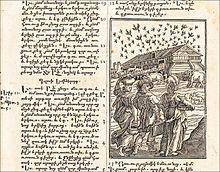 Armenia was a monolingual country by the 2nd century BC at the latest.[32] Its language has a long literary history, with a 5th-century Bible translation as its oldest surviving text. Its vocabulary has historically been influenced by Western Middle Iranian languages, particularly Parthian,[33] and to a lesser extent by Greek, Persian, and Syriac. There are two standardized modern literary forms, Eastern Armenian and Western Armenian, with which most contemporary dialects are mutually intelligible.[34][35][36][37]