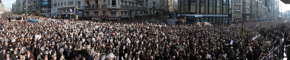 At Hrant Dink's funeral, tens of thousands of Turkish citizens marched in solidarity with Dink, many bearing placards reading "We are all Hrant Dink, we are all Armenians" sounding a hopeful note in the development of Armenian–Turkish relations.[88]