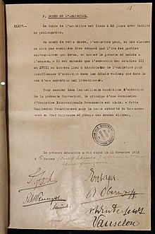- ^ a b c d e f g h i j k l m n o p q r s t Convention (PDF), 11 November 1918, archived from the original (PDF) on 23 November 2018, retrieved 17 November 2017