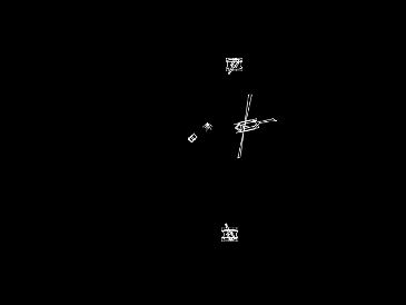 Tanks periodically spawn from different locations on the edge of the screen and drive towards the player. The tanks always travel along horizontal or vertical lines, unlike the freely moving jeep. Tank turrets move to track the player, allowing them to shoot in any direction. Tanks normally take two hits to kill, and the player can have only two rockets on the screen at a time. The helicopter spawns from any point, and approaches the player in looping paths flying over the jeep and periodically firing. If hit, the helicopter spirals in. Destroying the helicopter rewards the player with an extra life.