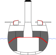 The underlying problem with these early warships was that technology had not caught up to the demands being made of them; therefore, they represented a series of compromises and could not be fully effective. They were typically powered by double-expansion steam engines fed by boilers which generated steam at perhaps 60 or 70 psi pressure, which gave relatively poor efficiency and short range. Even with improved engines, the dearth of overseas refueling stations made a full sailing rig a necessity. As sailing ships required a high freeboard and a large degree of stability, the use of armored turrets as used on monitors and some battleships was ruled out, because a turret was a very heavy weight high in the ship and its placement necessitated a lower freeboard than was warranted for an oceangoing vessel. (The loss of HMS Captain in 1870 with nearly all of her 500-man crew illustrated graphically what could happen in a heavy sea with a steam-and-sail turret ship.) Consequently, armored cruisers retained a more traditional broadside arrangement. Their armor was distributed in a thick belt around the waterline along most of their length; the gun positions on deck were not necessarily armored at all. The limitations of these ships would not be rectified fully until decades after their construction.[9]