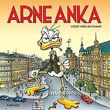 Arne Anka is a Swedish comic strip drawn by Charlie Christensen under the pseudonym Alexander Barks from 1983 to 1995 and 2006 and forward. The title character closely resembles Donald Duck (who is called Kalle Anka in Swedish).[1] The likeness with Donald Duck is only feather deep, however; the comics often take place at a bar, Zeke's, where Arne gets drunk while he cynically thinks about and discusses life. This usually happens in the company of his friend, Krille Krokodil ("Krille Crocodile"). In other situations, Arne is found walking, with friends or alone, and occasionally he is found in a completely different setting (albeit with the same group of friends), like ancient Rome or 18th century Paris. Always, however, he comments on life and (especially Swedish) society with sharp wit.