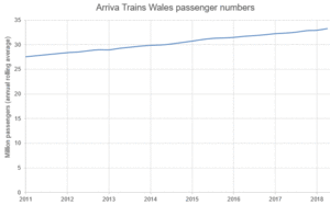 - ^ Arriva Trains Wales reports 'huge rise' in commuters Archived 28 September 2018 at the Wayback Machine BBC News September 2017