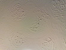 Artex differs from plaster in that it was marketed as a material intended to receive a textured finish, thus enabling a ceiling to be finished without plastering skills. It was very widely used in Britain in the 1970s, mainly with the familiar stippled and swirled patterns. Artex was also occasionally used on walls.[2]