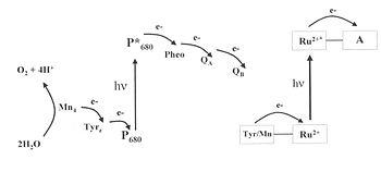 - Redox catalysis, which uses the aforementioned transferred electrons to oxidize water to dioxygen and protons; these protons can in some species be utilized for dihydrogen production.