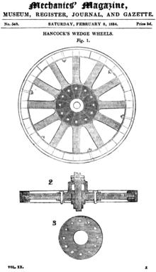 - ^ Hancock, Walter (8 February 1834). "Hancock's Wedge Wheels". Mechanics' Magazine. 20 (548): 305–306. ISBN 9781294332299. Retrieved 24 June 2020.