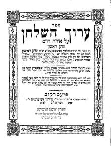 Aruch HaShulchan (Hebrew: עָרוּךְ הַשֻּׁלְחָן [or, arguably, עָרֹךְ הַשֻּׁלְחָן; see Title below]) is a work of halacha written by Rabbi Yechiel Michel Epstein (1829–1908). The work attempts to be a clear, organized summary of the sources for each chapter of the Shulchan Aruch and its commentaries, with special emphasis on the positions of the Jerusalem Talmud and Maimonides.
