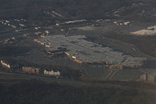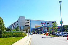 After Maryland voters approved slot machine gambling in Maryland in 2008, The Cordish Company planned a slots parlor next to the mall. The proposal for slots at Arundel Mills was on the ballot as a referendum in the November 2010 elections; the referendum passed, and construction began on the casino shortly afterward, with the grand opening of its first phase held on June 6, 2012.[4] Since full completion in September 2012, Live! Casino & Hotel has about 380,000 sq. ft. of floor space and 4,750 gaming slots.[5] Live! Casino & Hotel is a free-standing facility, separated from Arundel Mills by the inner mall ring road.[6] Although not directly connected to the mall, the casino is within walking distance of the food court entrance. Live! Casino & Hotel includes a 5,000-space parking structure at Arundel Mills with a "smart park" green-and-red-light space availability feature, such as the system used at nearby BWI Airport.[6] Parking is available free of charge during all mall hours for Arundel Mills shoppers.[6]