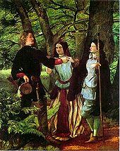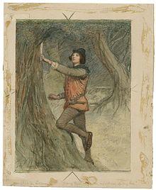 The direct and immediate source of As You Like It is Thomas Lodge's Rosalynde, Euphues Golden Legacie, written 1586-7 and first published in 1590.[2] Lodge's story is based upon "The Tale of Gamelyn," wrongly attributed to Geoffrey Chaucer and sometimes printed among his Canterbury Tales. Although it was first printed in 1721,"Gamelyin" must have existed in manuscript form in Shakespeare's time. It is doubtful that Shakespeare had read it, but Lodge must have built his pastoral romance on the foundation of "Gamelyin," giving it a pastoral setting and the artificial sentimental vein, much in fashion at the time. The tale provided the intertwined plots, and suggested all the characters except Touchstone and Jaques.