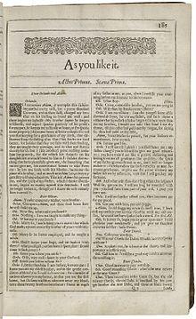 As You Like It was first printed in the collected edition of Shakespeare's plays, known as the First Folio, during 1623. No copy of it in Quarto exists, for the play is mentioned by the printers of the first Folio among those which "are not formerly entered to other men." By means of evidences, external and internal, the date of composition of the play has been approximately fixed at a period between the end of 1598 and the middle of 1599.