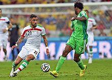 On 21 September 2011, he was invited to the Iranian national team by Carlos Queiroz.[48] He scored twice on his debut for Iran against Qatar on 29 February 2012 in a World Cup qualifier.[49] Upon qualification to the 2014 World Cup, his next international goals came on 15 and 19 November in Asian Cup qualifying wins over Thailand and Lebanon, sealing Iran's place in the 2015 Asian Cup as well.[50] Dejagah was named in Iran's 2014 FIFA World Cup squad by Carlos Queiroz.[51] He started for Iran in their opening match against Nigeria, but was substituted in the 73rd minute by Alireza Jahanbakhsh. He also played 85 and 68 minutes in the next matches against Argentina and Bosnia and Herzegovina, respectively. He was called into Iran's 2015 AFC Asian Cup squad on 30 December 2014 by Carlos Queiroz.[52]