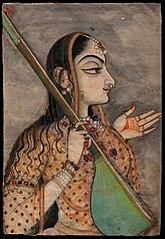 A lady singing, gouache painting with gold on paper 1740-1745, Rajasthan, artist unknown