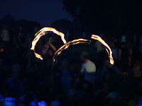 Although locals have long referred to the festival as the "Ashton Court Festival", before 2004 it was officially called the Bristol Community Festival.[2] Since then it became increasingly popular, and for several years it was claimed to be Britain's biggest free festival;[2] however, the "suggested minimum donation" for entry become a gradually increasing compulsory entry fee.[10] From 2007, children (aged 10–16) also had to pay an entry fee, while under 10s remained free (previously all children got in free), and a new discounted weekend ticket became available. The festival was typically attended by over 60,000 people annually.[2]