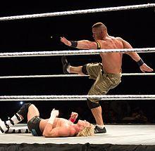 Also known as foot stomp, this attack sees a wrestler stamping a foot on any part of a fallen opponent. One variation performed by large, heavy wrestlers implies simply to step on the opponent's stomach as they walk, often referred to as a big walk. This variation, when performed by a villain, aims to the head of the opponent but in a crudest, vicious way.[1]
