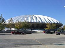 State Farm Center is a large dome-shaped 15,544-seat indoor arena located in Champaign, Illinois, owned and operated by the University of Illinois at Urbana-Champaign. The arena hosts games for the Illinois Fighting Illini men's basketball and women's basketball teams. It also doubles as a performance and event center, and is one of the largest venues between Chicago and St. Louis. It opened in 1963 and was known until 2013 as Assembly Hall until State Farm Insurance acquired naming rights as part of a major renovation project.