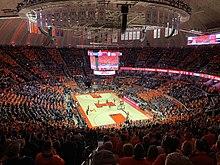 State Farm Center hosts home games of Illinois Fighting Illini men's basketball and Illinois Fighting Illini women's basketball and has earned a reputation as one of the toughest places to play in college basketball, thanks to the student cheering section, the "Orange Krush," which occupies the floor around the court as well as some seats.