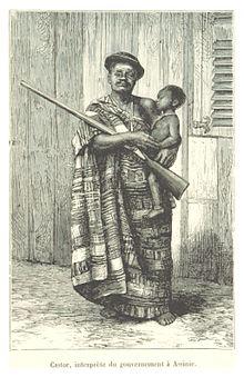 The French penetration of the region was counteracted by yellow fever epidemics (in 1857 of 50 Europeans in the three trading posts of Assinie, Grand-Bassam and Dabou, 32 died and 10 were repatriated) and British competition (Victor Régis, pioneer of French trade on this coast since 1843, had to close shop in the early 1860s).[7] However, the first Post Office opened on 17 August 1862.