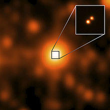 The more general term double star is used for pairs of stars which are seen to be close together in the sky.[1] This distinction is rarely made in languages other than English.[3] Double stars may be binary systems or may be merely two stars that appear to be close together in the sky but have vastly different true distances from the Sun. The latter are termed optical doubles or optical pairs.[6]