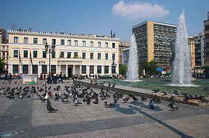 Athinas Street (Greek: Οδός Αθηνάς) is a street in downtown Athens in Greece. It is named after Athena, the goddess of wisdom. The street runs from Ermou Street north to Omonoia Square through the Psiri neighborhood. Its total length is nearly 1 km of which 80 m is a walkway since 1999. Until 1999, it used to access with Omonoia Square, now motorists can now access it via Lykourgos Street east to Aiolou and 28 Oktovriou (Patissi) Street and other streets. North of Lykourgos is a pedestrian walkway. It has two lanes of traffic and room for curb parking.