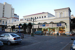 Famous buildings includes the Athens City Hall on the west side and office towers northward. The Modern Agora is east of Athinas Street. Kotzia Square lies to the east with Karamanou Square also on the east. Shops and residential buildings lies to the south with neo-classical buildings. In the middle of Athinas street is the Varvakeios municipal market. The oldest market in Athens[1] The rest of the architecture except for the city hall and square are modernistic. Metro Line 1 runs underneath Athinas street for its entire length.