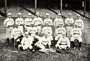 Two years later, the Braves put together one of the most memorable seasons in baseball history. After a dismal 4–18 start, the Braves seemed to be on pace for a last place finish. On July 4, 1914, the Braves lost both games of a doubleheader to the Brooklyn Dodgers. The consecutive losses put their record at 26–40 and the Braves were in last place, 15 games behind the league-leading New York Giants, who had won the previous three league pennants. After a day off, the Braves started to put together a hot streak, and from July 6 through September 5, the Braves went 41–12.[19] On September 7 and 8, the Braves took two of three games from the New York Giants and moved into first place. The Braves tore through September and early October, closing with 25 wins against six losses, while the Giants went 16–16.[20] They were the only team, under the old eight-team league format, to win a pennant after being in last place on the Fourth of July. They were in last place as late as July 18, but were close to the pack, moving into fourth on July 21 and second place on August 12.[21]