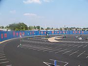 As was the case for every stadium that used this design concept, the fundamentally different sizes and shapes of baseball and football fields made it inadequate for both sports. In the baseball configuration, 70% of the seats were in foul territory.[5] In the football configuration, seats on the 50-yard-line—normally prime seats for football—were more than 50 yards (46 m) away from the sidelines.[19] One unusual feature of this stadium is the fact that, unlike most multi-purpose stadiums – where the football field was laid either parallel to one of the foul lines or running from home plate to center field – the football field here was laid along a line running between first and third base. Oakland Coliseum has a similar configuration.[20] Thus, a seat behind home plate for baseball would also be on the 50-yard line for football. The stadium was refurbished for the 1996 season prior to hosting the Olympic baseball competition.[21][22]