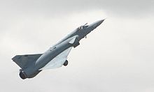 South Africa also embarked on a ambitious development programme intended to produce an modern fighter aircraft to meet its long term requirement under the codename of Project Carver.[14] It was organised as a joint effort between the SAAF, Atlas, and the National Research Laboratory.[13][15] By 1986, Atlas had selected a design for a lightweight single-engined aircraft, featuring a single vertical stabiliser and a mid-mounted delta wing furnished with leading-edge root extensions (LERX) set above the engine's air intakes.[14] It became necessary to design the aircraft around the preexisting Snecma Atar 09K50 engine;[15] however, it became clear that, even with upgrades, if the aircraft was powered by a single Atar engine, the desired range and load-carrying capacities were unachievable.[14] Thus, the design team changed to a twin-engine layout instead, this alteration reportedly disrupted the project for a time.[14] During 1988, the SAAF, recognising that the project could no longer meet the original schedule, approved an interim programme, known as Project Tunny, to satisfy its immediate air defence needs via an improved version of the Cheetah, the Cheetah C.[14]