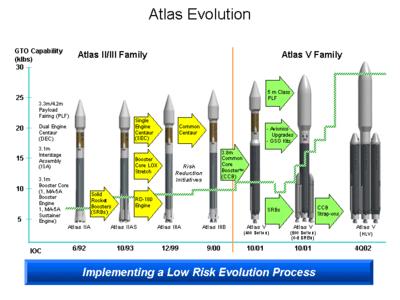 Atlas IIA was a derivative designed to service the commercial launch market. The main improvement was the switch from the RL10A-3-3A to RL10A-4 engine on the Centaur upper stage.[6] The IIA version flew between 1992 and 2002.[7]