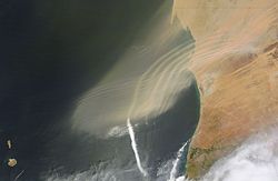 An atmospheric wave is a periodic disturbance in the fields of atmospheric variables (like surface pressure or geopotential height, temperature, or wind velocity) which may either propagate (traveling wave) or not (standing wave). Atmospheric waves range in spatial and temporal scale from large-scale planetary waves (Rossby waves) to minute sound waves. Atmospheric waves with periods which are harmonics of 1 solar day (e.g. 24 hours, 12 hours, 8 hours... etc.) are known as atmospheric tides.