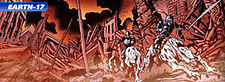 One of the Earths, designated Earth-17 by Rip Hunter, is heavily altered by Mister Mind in his Hyperfly form, and his effects on the Earth have turned it into a copy of the home of the original version of the Atomic Knights, the version from their original stories.[1]