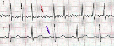 Atrial fibrillation is diagnosed on an electrocardiogram (ECG), an investigation performed routinely whenever an irregular heartbeat is suspected. Characteristic findings are the absence of P waves, with disorganized electrical activity in their place, and irregular R–R intervals due to irregular conduction of impulses to the ventricles.[21] At very fast heart rates, atrial fibrillation may look more regular, which may make it more difficult to separate from other supraventricular tachycardias or ventricular tachycardia.[63]