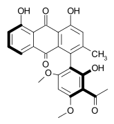 Many atropisomers occur in nature, and some have applications to drug design. The natural product Mastigophorene A has been found to aid in nerve growth.[1][17] Other examples of naturally occurring atropisomers include vancomycin isolated from an Actinobacterium, and knipholone, which is found in the roots of Kniphofia foliosa of the family Asphodelaceae. The structure complexity in vancomycin is significant because it can bind with peptides due to the complexity of its stereochemistry, which includes multiple stereocenters, two chiral planes in its stereogenic biaryl axis. Knipholone, with its axial chirality, occurs in nature and has been shown to offer good antimalarial and antitumor activities particularly in the M form.[1]