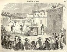 According to historian Anthony Clark, "there is no doubt Chapdelaine's death was exploited for imperialist gain".[1] The French Empire had many times suffered the death of missionaries for which no military vengeance occurred. The political situation wherein Britain's victory was seen as inevitable and the French desire to make its own imperial gains in China, alongside the fact that the French did not have a policy elsewhere of punitive military expeditions to avenge the death of missionaries, has led many historians to conclude that the death of Chapdelaine was merely an excuse used in order to declare war so that France could build its empire.[4][5][6]
