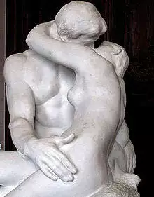 The next opportunity for Rodin in America was the 1893 Chicago World's Fair.[64] Hallowell wanted to help promote Rodin's work and he suggested a solo exhibition, which she wrote him was beaucoup moins beau que l'original but impossible, outside the rules. Instead, she suggested he send a number of works for her loan exhibition of French art from American collections and she told him she would list them as being part of an American collection.[65] Rodin sent Hallowell three works, Cupid and Psyche, Sphinx and Andromeda. All nudes, these works provoked great controversy and were ultimately hidden behind a drape with special permission given for viewers to see them.[66]