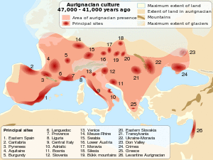- ^ a b Wood, Bernard, ed. (2011). "Aurignacian". Wiley-Blackwell Encyclopedia of Human Evolution. John Wiley. ISBN 9781444342475.
