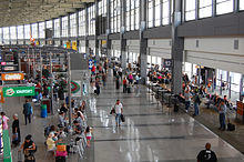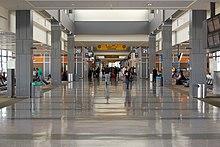 The terminal's first expansion project was completed in the summer of 2015. It added an enlarged customs and immigration facility on the arrivals level capable of processing more than 600 passengers per hour, two domestic baggage claim belts, and an enlarged security checkpoint on the ticketing level.[17] In 2019, an addition to the east side of the terminal added nine new gates, increasing the total number of gates from 25 to 34. These gates are spaced farther apart, to accommodate additional flights operated by larger aircraft. and Gates 1+3 and Gates 2+4 are able to act independently of each other when accommodating narrow body aircraft, or as one gate's Door A and Door B in a dual jetbridge configuration when larger, wide-body aircraft arrive providing boarding options. The number of flexible-use gates that can accommodate both international and domestic flights increased from two to six.[18]