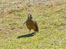 The austral thrush (Turdus falcklandii) is a medium-sized thrush from southern South America. There are two subspecies, the Magellan thrush (T. f. magellanicus) from south Argentina and south and central Chile, and the Falkland thrush (T. f. falcklandii) from the Falkland Islands.