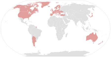 The group, initially consisting of 15 members, held its first meeting in Brussels, Belgium, in June 1985.[2] With the incorporation of India on January 19, 2018, it now has 43 members,[3] including Australia, New Zealand, the European Commission, all 27 member states of the European Union, United Kingdom, the United States, Canada, India, Ukraine, and Argentina. The name comes from Australia's initiative to create the group. Australia manages the secretariat.