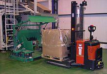 Pallet handling is an extremely popular application for AGVs as repetitive movement of pallets is very common in manufacturing and distribution facilities. AGVs can move pallets from the palletizer to stretch wrapping to the warehouse/storage or to the outbound shipping docks.[11] [12]