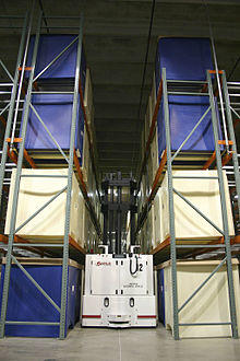 AGVs used in Warehouses and Distribution Centers logically move loads around the warehouses and prepare them for shipping/loading or receiving or move them from an induction conveyor to logical storage locations within the warehouse. Often, this type of use is accompanied by customized warehouse management software.[16]
