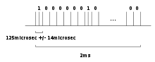 The FLP burst consists of 17 NLP at a 125 µs time interval (with a tolerance of 14 µs). Between each pair of two consecutive NLP (i.e. at 62.5 µs after first NLP of the pulse pair) an additional positive pulse may be present. The presence of this additional pulse indicates a logical 1, its absence a logical 0. As a result, every FLP contains a data word of 16 bits. This data word is called a link code word (LCW). The bits of the link code word are numbered from 0 to 15, where bit 0 corresponds to the first possible pulse in time and bit 15 to the last.