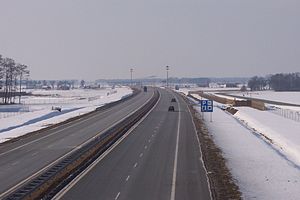 The autostrada A2 in Poland, officially named Autostrada Wolności (Motorway of Freedom),[1] is a motorway which runs from the Polish-German border in Świecko/Frankfurt an der Oder (connecting to A12 autobahn), through Poznań and Łódź to Warsaw and, in the future, to the Polish-Belarusian border in Terespol/Brest (connecting to M1 highway).[2] The motorway is a part of the European route E30 connecting Berlin and Moscow.
